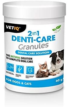 Denti-Care Granules es un antisarro es un producto natural a base de menta, perejil y extracto de granada que ayuda con el higiene dental de tu mascota. Este artículo para perros ayuda a eliminar la placa bacteriana, el sarro y el mal aliento en el animal. Su exclusiva receta asegura el cuidado de la higiene bucal de tu mejor amigo.